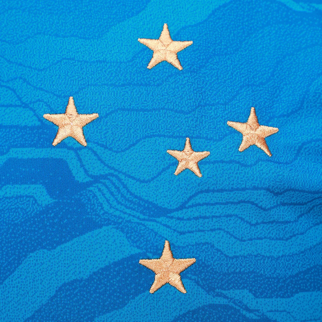 Mostre o orgulho Celeste com a Camisa Cruzeiro III 25/26! Escolha certa para os torcedores que buscam um visual cheio de atitude, esta camisa do Cruzeiro apresenta um design moderno em predominância azul com detalhes dourados, ideal para exibir seu amor pelo Cabuloso com estilo e sofisticação. Confeccionada em tecido respirável com tecnologia AEROREADY, garante bem-estar e liberdade de movimento para todos os momentos, enquanto o pequeno patch de homenagem ao Rio São Francisco nas costas, próximo à gola, e o grafismo em toda extensão frontal reforçam sua conexão com a cultura de Minas.