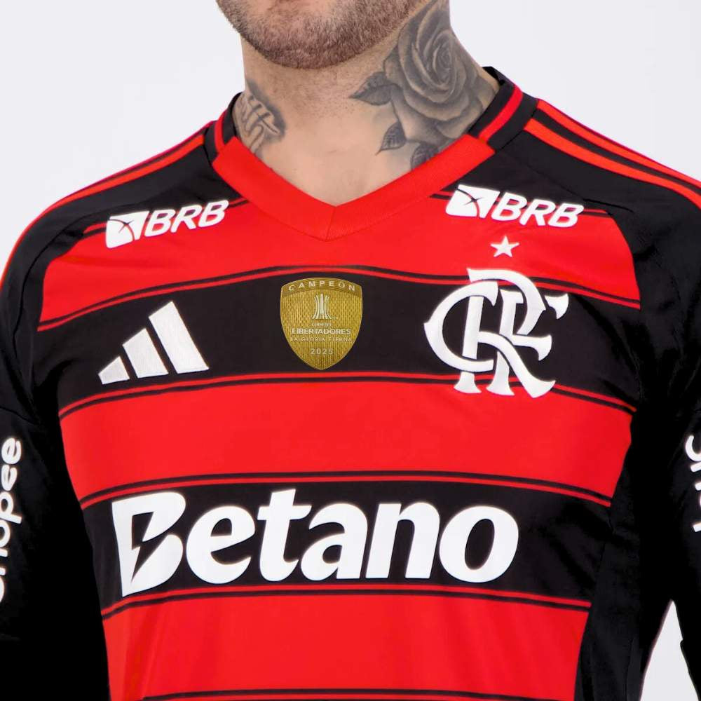 Camisa Adidas Flamengo 25/26 I M. Longa Campeão Libertadores 2025